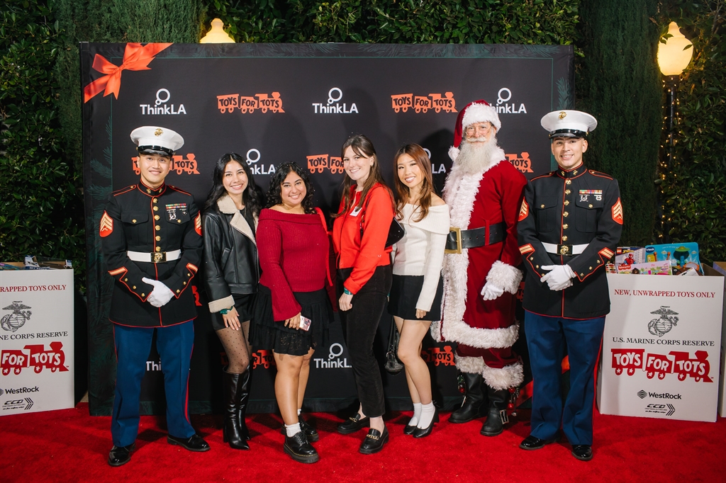 ThinkLA's Toys for Tots Holiday Party transformed the Taglyan Complex into an enchanting wonderland, a night where magic and generosity intertwined. The air was filled with festive cheer from the moment guests stepped in. The venue sparkled with laughter and joy as industry peers mingled, immersed in the spirit of giving. The event wasn't just a celebration; it was a call to make a meaningful impact. Activities like the hot chocolate and espresso bar warmed hearts, the DJ's beats set the mood, and the letter writing for the Marines became a heartfelt gesture. Faces lit up as holiday carolers greeted everyone, and the highlight, Santa himself, spread smiles and excitement. Donations poured in, spreading the season's essence and bringing cheer to those in need. It was an evening where generosity shone, leaving lasting memories of enchantment and goodwill.